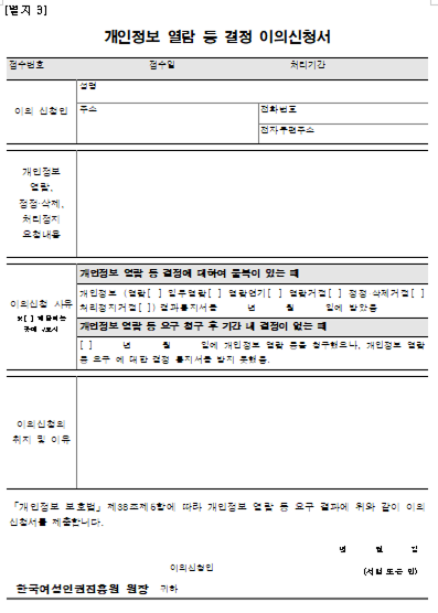 *[별지 3] 개인정보 열람 등 조치에 대한 이의신청서