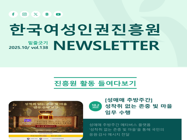한국여성인권진흥원 "밑줄긋기" 138호 - [성매매 추방주간] 성착취 없는 존중 빛 마을 임무 수행