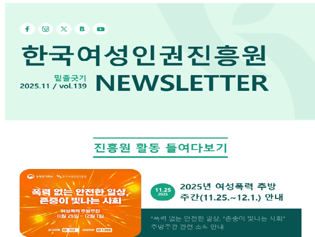 한국여성인권진흥원 "밑줄긋기" 139호 - 2025년 여성폭력 추방주간(11.25~12.1.) 안내
