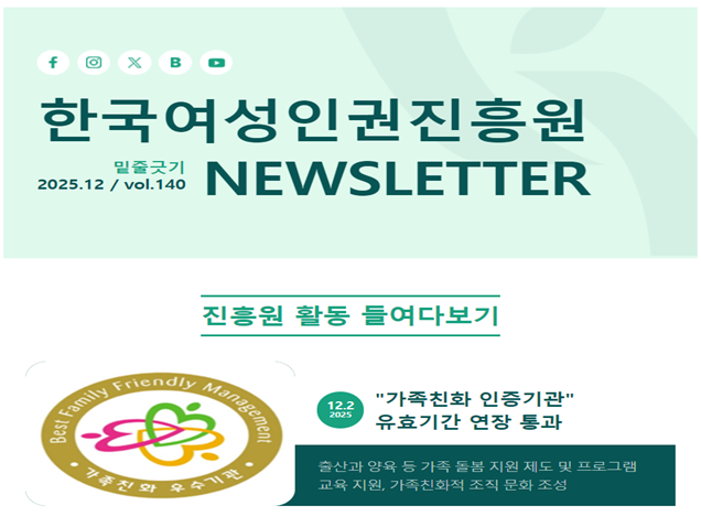 한국여성인권진흥원 "밑줄긋기" 140호 - 진흥원, "가족친화 인증기관" 유효기간 연장 통과
