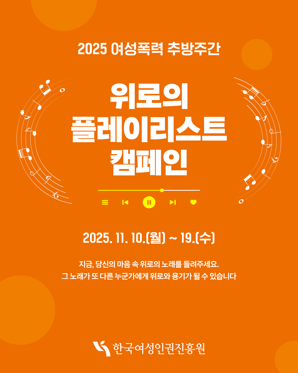 한국여성인권진흥원은 2025년 여성폭력 추방주간을 맞아, <위로의 플레이리스트>캠페인을 진행합니다.